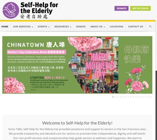 NEWS AND UPDATES Cash Donation to SelfHelp Elderly in San Francisco Self-Help’s mission is for the Elderly promotes independence, well-being, and dignity for older adults through culturally aligned services and programs in the San Francisco Bay Area. Click to learn more: SelfHelp Elderly
